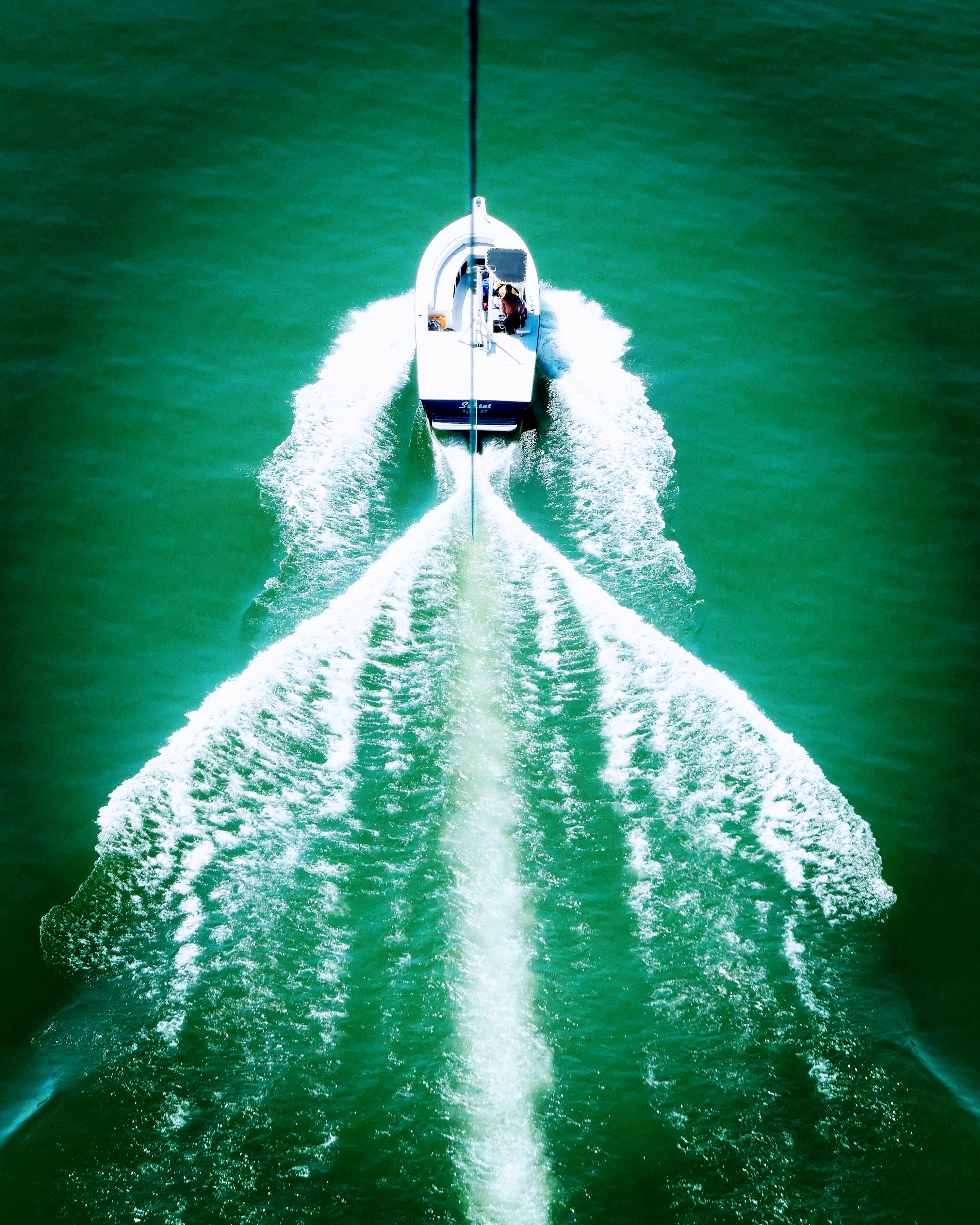 Parasail boat cutting through crystal waters