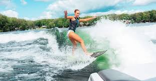 Wake surfing on Flathead Lake